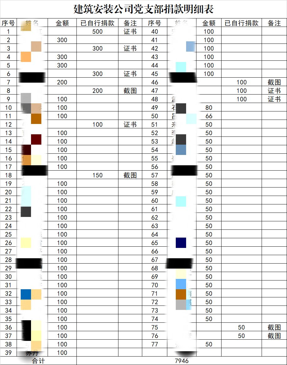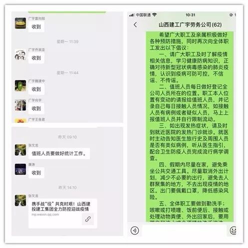 一分公司 面对严峻的新型冠状病毒肺炎疫情,一分公司积极响应上级号召,迅速行动,全力配合做好疫情防控工作,确保员工的生命安全和身体健康。通过QQ、微信群等平台为全体员工推送预防新型冠状病毒科学知识,帮助员工了解和预防新型冠状病毒,避免盲目恐慌。及时在群中转发官方最新疫情进展情况,引导员工提高思想重视,科学防疫。项目部在疫情爆发伊始就为值班员工发放了口罩、温度计等物品,并悬挂宣传条幅,定时组织对项目办公室、食堂、卫生间等进行清洁、消毒、通风。同时,一分公司号召全体员工爱心捐款,以实际行动为打赢疫情防控战贡献力量。全体员工积极响应号召,目前共收到134人捐款,金额共计11696元。 二分公司 自疫情升级以来,二分公司积极应对,在分公司配备了84消毒液、喷壶等消毒工具,安排春节值班人员每日对办公区域进行喷洒消毒,并积极参与集团公司抗击疫情募捐活动,发动分公司全体职工进行捐款,累计捐款4100元,为防止疫情蔓延贡献自己的一份力量。 三分公司 面对疫情,三分公司迅速反应,第一时间下发了《三分公司关于疫情防控工作安排的通知》,就疫情防控工作进行了安排部署,并第一时间转发国家官方疫情工作部署相关文件以及《山西建工集团关于做好新型冠状病毒感染肺炎疫情防控工作的紧急通知》,同时在群内转发正规渠道获得的相关疫情信息,让大家在保护自己和家人的同时,不恐慌、不造谣、不信谣,传播正能量。三分公司党支部,响应号召,积极组织分公司全体党员领导干部、全体职工积极捐款,共同抗击疫情与全国人民一起共渡难关。截止1月30日15:00,共收到91名职工的募捐款8960元,此外两名员工还通过其他渠道分别募捐100元、500元。 四分公司 四分公司积极转发关于疫情防控工作的紧急通知,落实有关要求,及时下发《关于做好新型冠状病毒感染肺炎疫情防控工作的紧急通知》,明确防控工作的组织领导和具体安排;同时,密切关注疫情发展,通过QQ、微信工作群,广泛宣传防控疫情的健康科普小知识,提高全体员工认识到做好新型冠状病毒感染的肺炎防控工作的重要性和紧迫性,牢固树立凝心聚力打赢防疫攻坚战的信心。同时,四分公司党支部号召全体员工积极参与募捐活动,共计捐款金额8378元,用实际行动支持新型冠状病毒感染的肺炎疫情防控工作。 五分公司 面对严峻的疫情防控形势,集团公司党委向全体建工人发出募捐倡议,五分公司上下积极响应捐款倡议,截止目前共计195人捐款,捐款金额15480元。此外,还有11名员工自主通过腾讯、支付宝等平台捐款660元。 六分公司 六分公司积极部署,落实集团公司文件精神,成立疫情防控工作领导组,制定切实可行的疫情防控工作方案,全力摸排,及时建立台账,按时报送相关信息,科学有序做好防控工作,严格落实疫情防控日报制度,通过微信等平台宣传发布正确的疫情防治知识和防控措施,扎实推进疫情防控各项工作任务。同时,六分公司上下积极响应,组织捐款,共计123人捐款10180元。 九分公司 根据集团公司统一安排部署,九分公司高度重视、积极应对、周密部署,正式下发《九分公司关于做好新型冠状病毒感染肺炎疫情安全防控专项应急预案的通知》,进一步明确应急领导小组的工作目标、工作原则等,明确如何预防控制、应急保障措施等。同时,利用微信群等途径及时向分公司全体员工发布关于疫情防控的工作提示,确保信息畅通,切实保障在外员工的身体健康,规范疫情控制进程中的具体作业行为,减轻或消除突发事件引起的危害和影响。并要求项目部值班人员佩戴口罩,严格进出现场人员登记制度。 投资管理公司 投资管理公司周密安排部署,准确摸清员工外出情况,及时建立台账,按时报送相关信息,倡导大家减少出门和聚餐,屋内勤通风,出门戴口罩,不信谣,不传谣,相信国家,相信科学,理性判断、合理应对突发疫情。投资管理公司党支部组织全体党员学习《关于坚决贯彻落实习近平总书记重要指示充分发挥基层党组织战斗堡垒作用和共产党员先锋模范作用团结带领广大人民群众打赢疫情防控阻击战的通知》《关于加强党的领导、为打赢疫情防控阻击战提供坚强政治保证的通知》等文件,坚决贯彻执行上级党委、政府关于疫情防控工作的各项决策部署,充分发挥战斗堡垒作用和先锋模范作用。积极响应集团公司号召,开展捐款活动,截止目前共计捐款人员50人,捐款金额6780元。 东北公司 东北公司协助驻地的开源村的防疫工作组开展了志愿防疫工作。1月30日上午九点,工作组和东北公司志愿者们在村口悬挂条幅,为返乡人员宣传做好自我隔离与观察工作。东北公司对疫情防范工作高度重视,每天值班领导都会组织对办公室进行消毒工作,并响应国家号召延迟复工日期,利用微信群每日对职工进行宣传报道工作,提醒大家勤通风,戴口罩,少出门,为防范疫情做好自己应尽责任。 华北公司 在集团公司党委的倡议下,华北公司党支部积极响应,第一时间转发了《抗击疫情、共渡难关募捐倡议书》,号召公司全员积极捐款。短短数小时,累计筹集捐款11600元,并第一时间将捐款上交集团公司党委。此外,为切实做好新型冠状病毒感染的肺炎疫情防控工作,有效维护职工身体健康和生命安全,华北公司第一时间在微信工作群转发疫情防控相关文件,并对项目一线关于疫情防