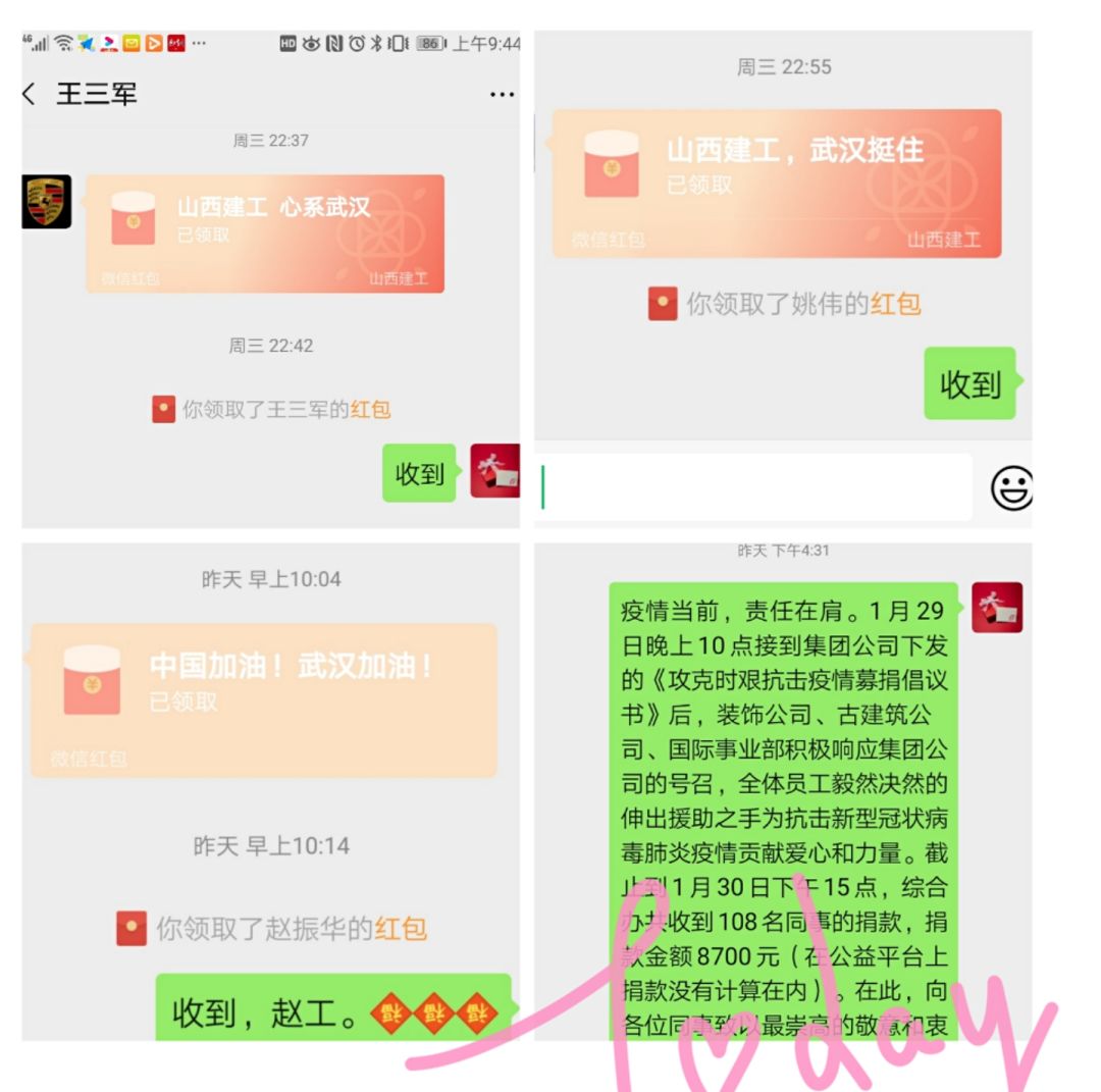集团公司 疫情就是命令,国企勇于担当!自湖北武汉冠状病毒疫情发生以来,山西建投建工集团高度重视,快速反应、积极应对,把疫情防控作为当前最重要的工作,部署防控工作,明确工作机制和防控措施,提出具体要求和目标,严格执行国务院各有关部门和地方人民政府关于疫情防控工作部署要求,迅速采取强有力措施,防止疫情扩散蔓延。同时,集团公司党委积极响应山西省红十字会抗击新型冠状病毒感染肺炎接收社会捐赠的公告,及时发布《抗击疫情、共渡难关募捐倡议书》,一时间,集团公司上下全体职工积极践行社会责任,主动奉献爱心,通过各所属公司、党支部踊跃捐款,汇聚力量,共同驰援肺炎疫情防控阻击战。短短两日,共募捐善款273300元,以实际行动践行了一方有难,八方驰援;病毒无情,人间有爱的国企担当和同舟共济、抗击疫情的必胜决心。